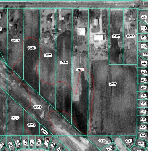 Aerial imagery of proposed development from 1993. Circled in red are the wetlands mapped in the LCWI.